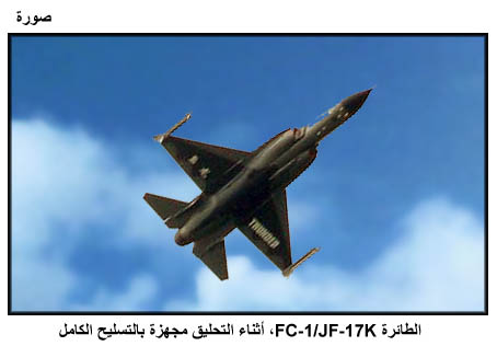 الطائرة FC-1/JF-17K، أثناء التحليق مجهزة بالتسليح الكامل