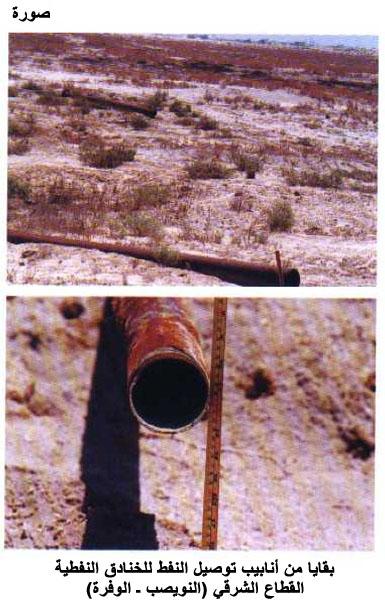 صورة لبقايا أنابيب توصيل النفط للخنادق النفطية بالقطاع الشرقي (النويصب/ الوفرة).