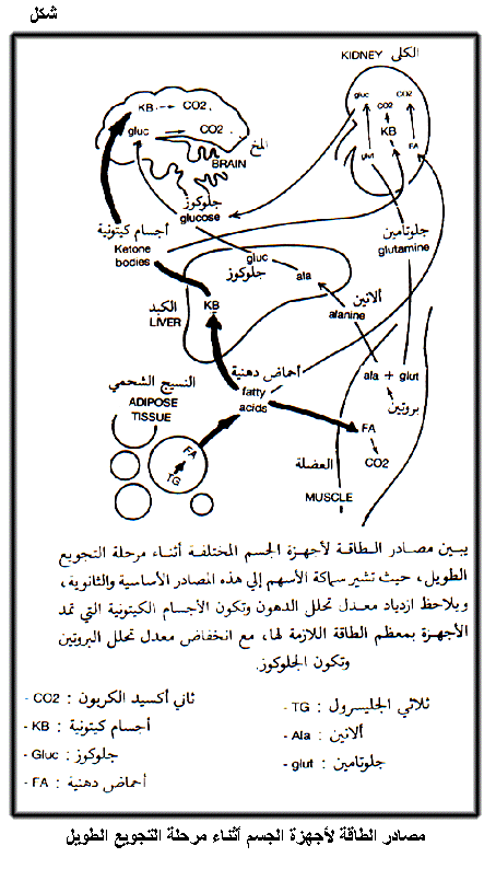 مصادر الطاقة لأجهزة للجسم أثناء مرحلة التجويع الطويل