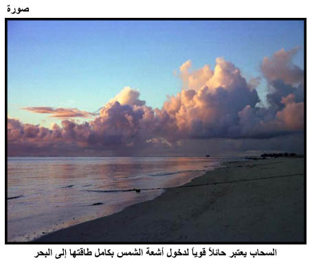 السحاب يعتبر حائلاً قوياً لدخول أشعة الشمس بكامل طاقتها إلى البحر.