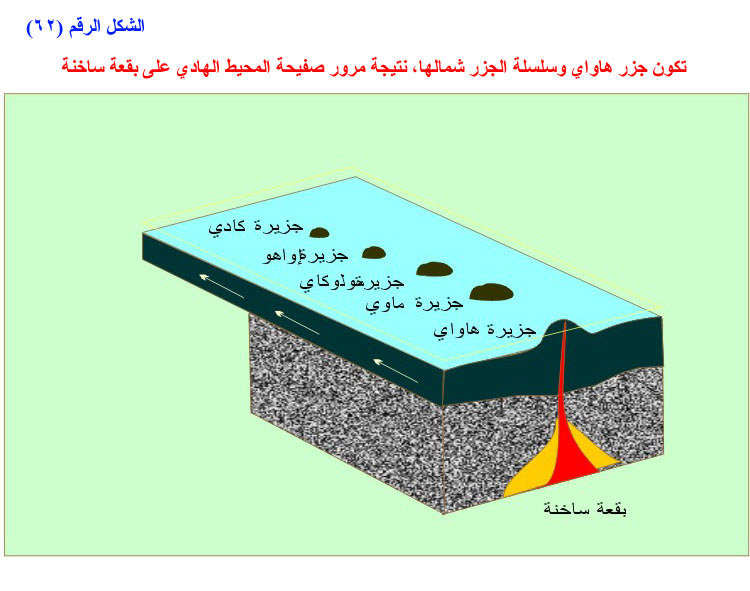 تكوّن جزر هاواي وسلسلة الجزر شمالها، نتيجة مرور صفيحة المحيط الهادي على بقعة ساخنة