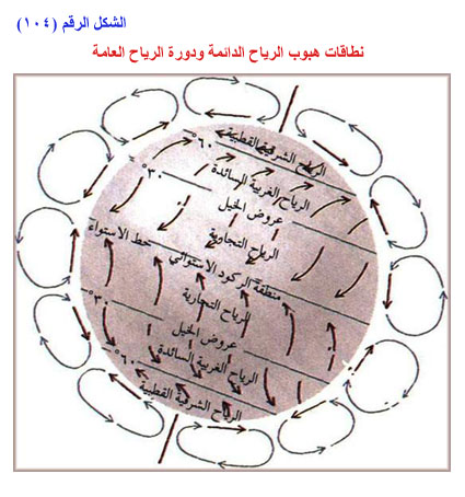 نطاقات هبوب الرياح الدائمة ودورة الرياح العامة