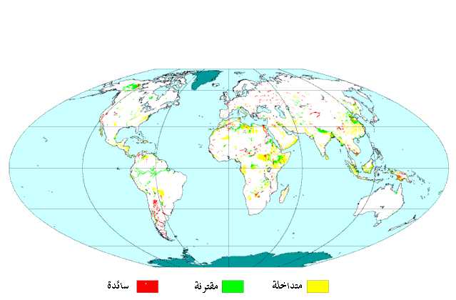 التوزيع الجغرافي لوحدة ترب الرواسب المائية الحديثة Fluvisols (منظمة الأغذية والزراعة FAO)