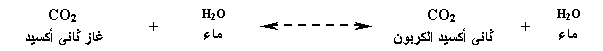 وحمض الكربونيك، بدوره، يتحلل إلى أيون الهيدروجين H+ والبيكربونات HCO-3: