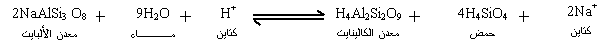 ولتركُّز كتاين الهيدروجين في المحلول المائي، دور أساسي في تجوية المعادن في التربة؛ كما هو واضح من المعادلة الكيماوية التالية، التي توضح تحلُّل معدن الألبايت في الماء، نتيجة لغزو كتاين الهيدروجين لبنائه البلوري، ليتكون معدن الكالينايت في التربة: