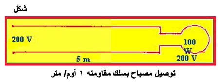 توصيل مصباح بسلك مقاومته 1 أوم/ متر