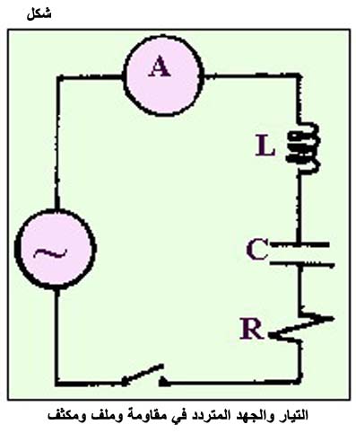 التيار والجهد المتردد في مقاومة وملف ومكثف