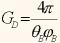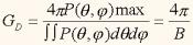 يعرف المعامل B على أنه مساحة مقطع النموذج الإشعاعي؛ وهذه المساحة تساوي تقريباً حاصل الضرب ؛ حيث هي الزاوية بين النقط التي تنخفض فيها القدرة المشعة إلى نصف قيمتها العظمى في المستوى الأفقي، (اُنظر شكل زاوية في المستوى الأفقيjB وهي الزاوية نفسها في المستوى الرأسي، ويصبح معامل الكسب الاتجاهي GD في حالة قياس الزوايا بالتقدير الدائري كالآتي:
