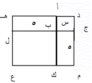 ومساحة المربع أج والمستطيلين ب هـ ، ب م، والمربع ب ع تساوي مساحة المربع دع