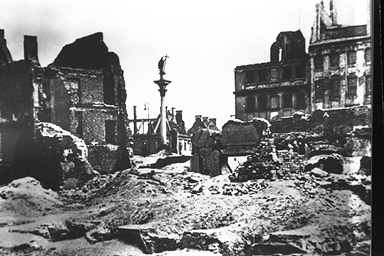 آثار الحرب العالمية الثانية، يبدو الدمار الشامل الذي لحق بمدينة وارسو ببولندا، من جراء العدوان الألماني في الحرب العالمية الثانية