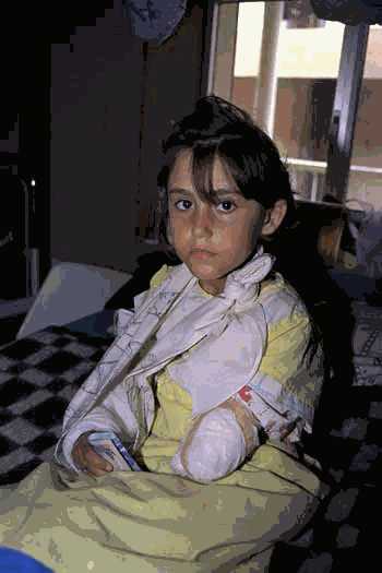 طفلة عراقية بترت يدها من جراء انفجار لغم أرضي