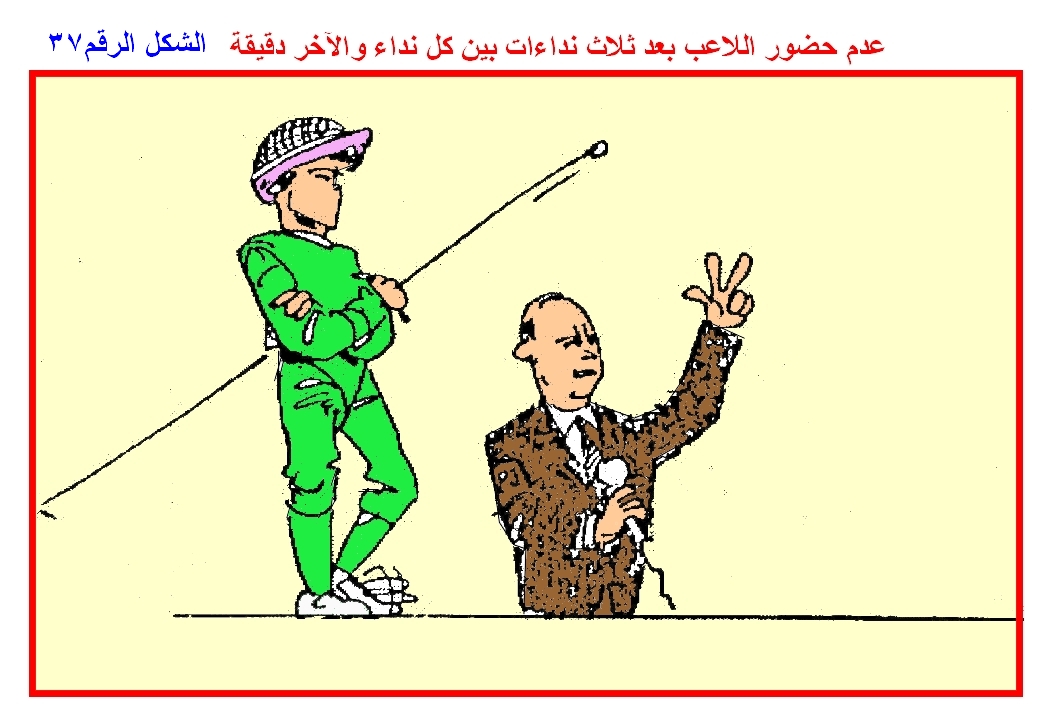 عدم حضور اللاعب بعد ثلاثة نداءات بين كل نداء والآخر دقيقة