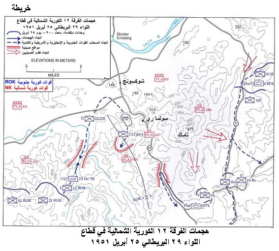 هجمات الفرقة 12 الكورية الشمالية في قطاع اللواء 29البريطاني 25 أبريل 1951