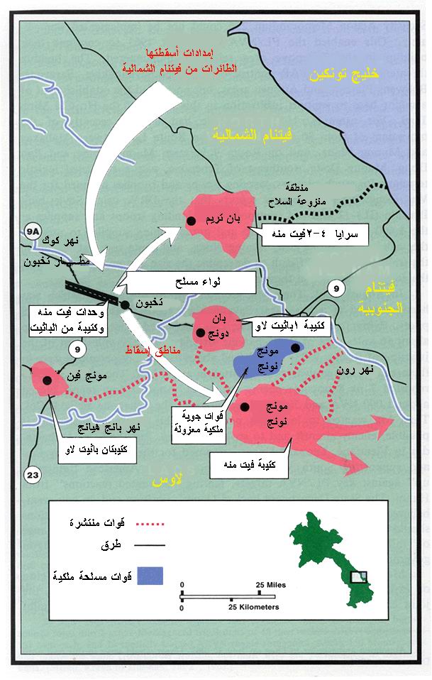 مناطق تمركز قوات الفيت منه، وثوار الباثيت لاو، في نطاق مطار تخبون، في لاوس؛ وإسقاط إمدادات من فيتنام الشمالية