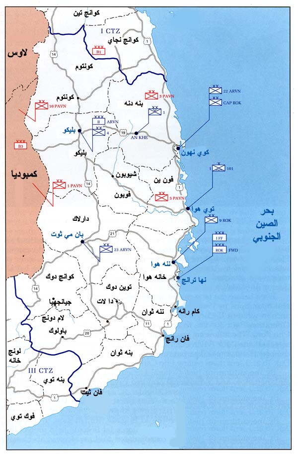 مناطق توزيع عديد من وحدات الفيلق الجنوبي الثاني، في مناطق إستراتيجية، في مرتفعات فيتنام الجنوبية، في أكتوبر 1966