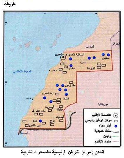المدن ومراكز التوطن الرئيسية بالصحراء الغربية