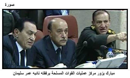 مبارك يزور مركز عمليات القوات المسلحة برفقته نائبه عمر سليمان