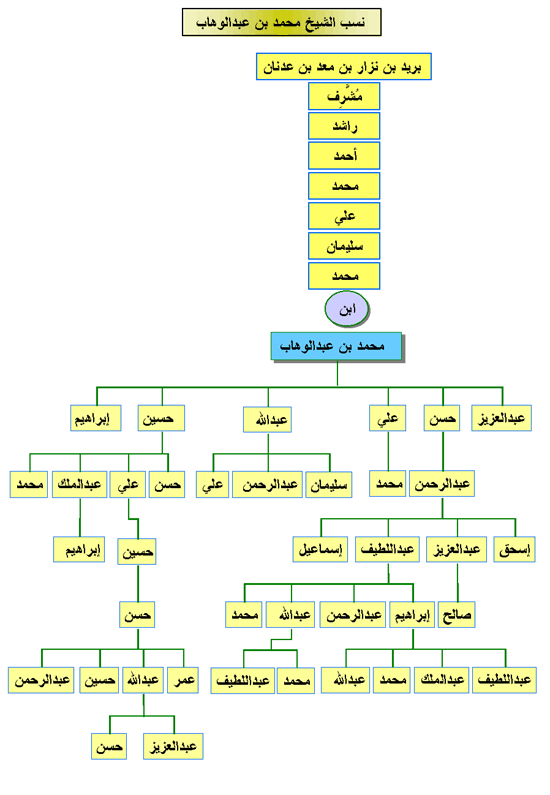 [2]  للاطلاع على سلسلة نسب الشيخ كاملة إلى عدنان، انظر حاشية المحقق لكتاب عثمان بن بشر، `عنوان المجد في تاريخ نجد`، ج2، ص180، ط4، الرياض، منشورات دارة الملك عبدالعزيز، 1402هـ، تحقيق عبدالرحمن ابن عبداللطيف آل الشيخ وتعليقه.