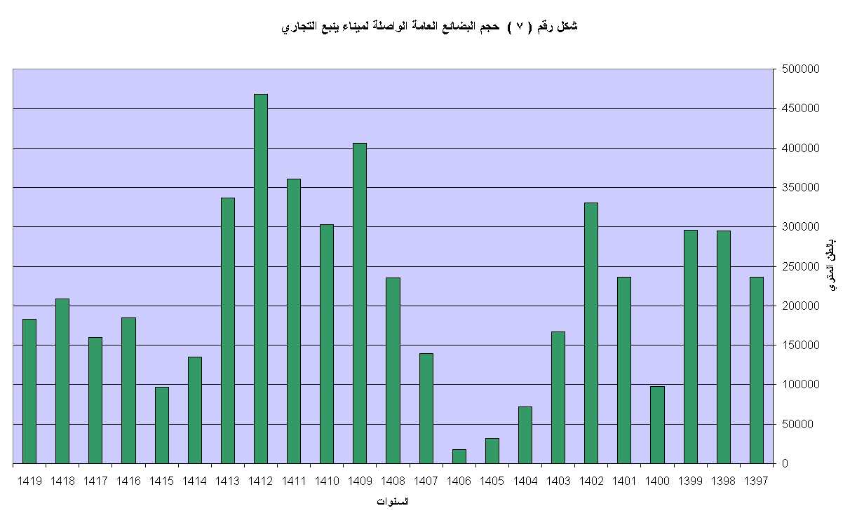 حجم البضائع العامة الواردة عن طريق ميناء ينبع التجاري