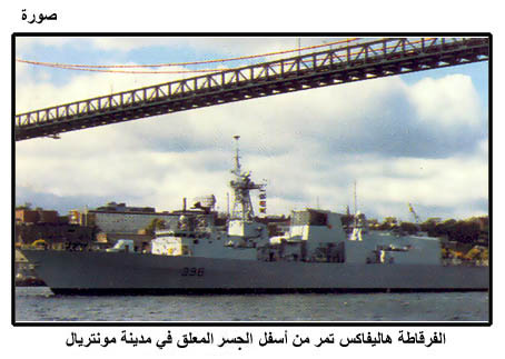 الفرقاطة هاليفاكس تمر من أسفل الجسر المعلق في مدينة مونتريال