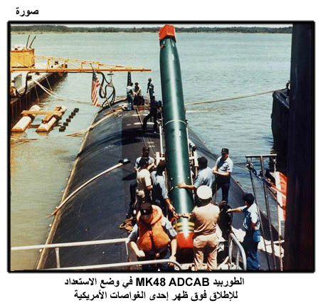 الطوربيد MK48 ADCAB في وضع الاستعداد للإطلاق فوق ظهر إحدى الغواصات الأمريكية