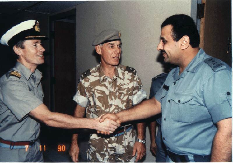 استقبال سمو الفريق الركن خالد بن سلطان بن عبدالعزيز، قائد القوات المشتركة ومسرح العمليات للجنرال السير بيتر دي لابليير قائد القوات البريطانية، في مكتب سموه