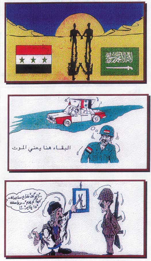 نماذج من الرسوم الكاريكاتيرية التي كانت تلقى على القوات العراقية بهدف الحرب النفسية