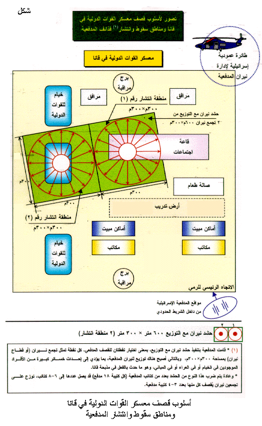 أسلوب قصف معسكر القوات الدولية في قانا ومناطق سقوط وانتشار المدفعية