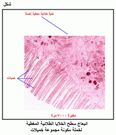 انبعاج سطح الخلايا الطلائية المغطية لخملة مكونة مجموعة خميلات
