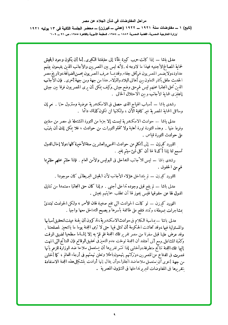كتاب من ثروت باشا رئيس مجلس الوزراء إلى اللورد لويد ختمت به المحادثات