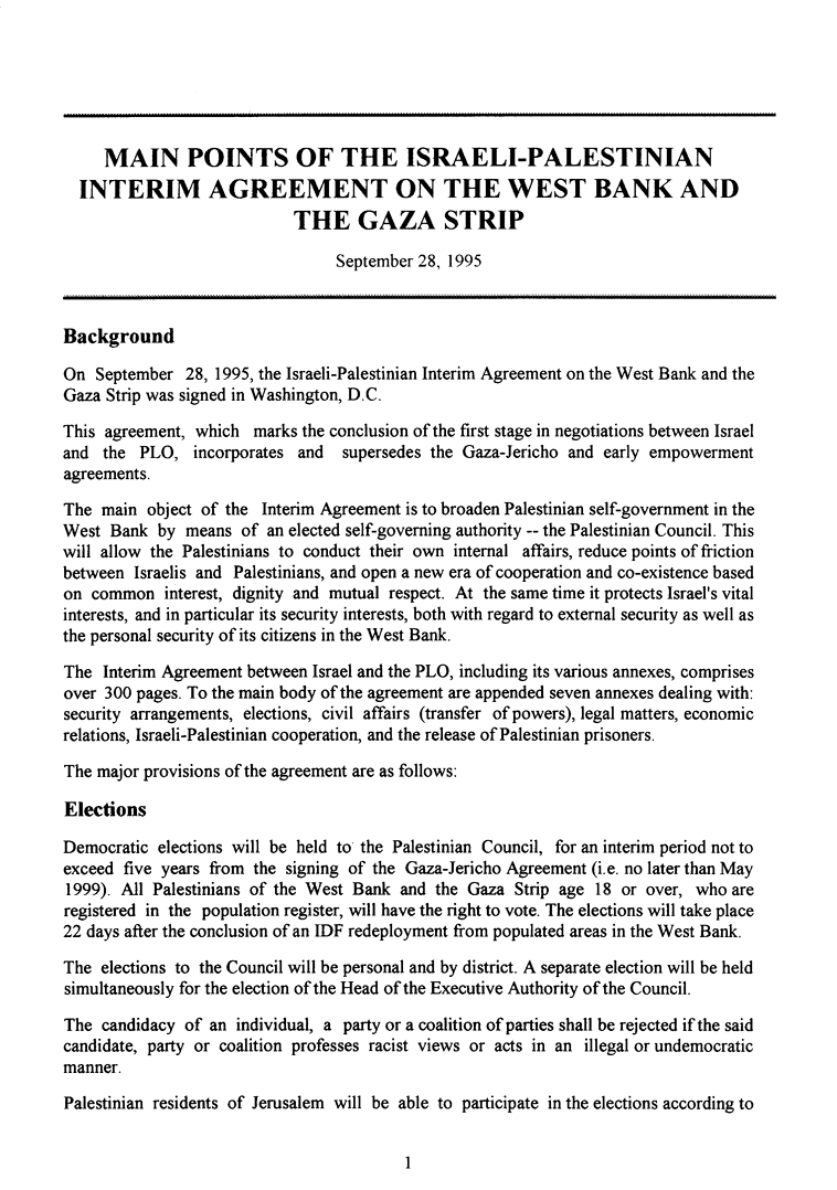 الاتفاقية الإسرائيلية ـ الفلسطينية المرحلية حول الضفة الغربية وقطاع غزة