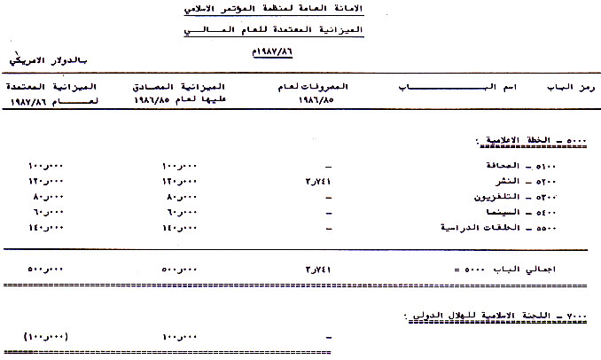 (تابع) الدورة الخامسة لمؤتمر القمة الإسلامي، الكويت، دولة الكويت، القرارات المالية، ميزانية الأمانة العامة للسنة المالية 86 / 1987