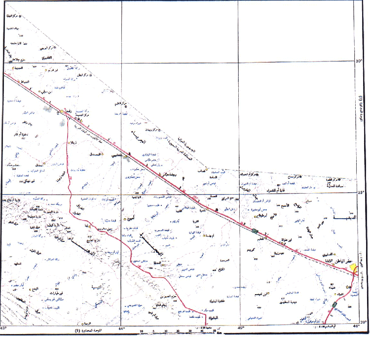 مسرح القتال البري لقوات التحالف (الحدود الشمالية السعودية ـ العراقية) من جهة الغرب إلى الشرق، من خط طول 543 إلى خط طول 546